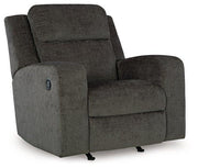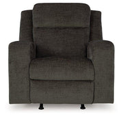 Indulgent comfort meets fashion-forward flair in this rocker recliner. Its luxuriously soft upholstery and captivating color show off your cozy yet smart style. Sleek track arms infuse a modern sensibility, while the gentle rocking motion makes this piece even more inviting. Simple pull tab reclining puts endless relaxation within easy reach.