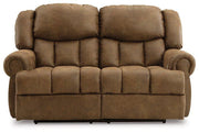 Expansive elegance. This power reclining loveseat makes a sizable style statement. Its large scale enhances the luxe appearance, magnifying the beauty of richly warm brown faux leather. Polishing off the piece is one-touch power reclining, which adds a layer of function to this masterclass in form.